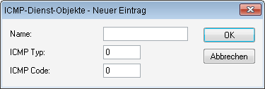 Über die Schaltfläche ICMP-Dienst-Objekte definieren Sie ICMP-Dienste, die die IPv6-Firewall für Filterregeln verwenden kann.