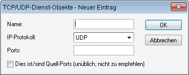 Anmerkung: In bestimmten Szenarien kann es sinnvoll sein, einen Quell-Port anzugeben. Normalerweise ist es aber unüblich, so dass die Auswahl "nein" zu empfehlen ist.
