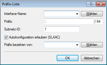 Setzen Sie die Präfix-Optionen verwendeter Schnittstellen. Möglich sind folgende Einstellungen: