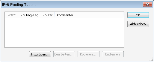 Die Tabelle enthält die Einträge für das Routing von Paketen mit IPv6-Adresse.