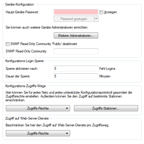 - ein Master-Passwort (beschränkter SNMP-Lesezugriff), oder