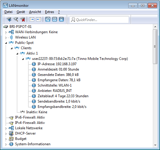 Sie haben die Möglichkeit, sich im LANmonitor detaillierte Informationen zu Public Spot-Clients anzeigen zu lassen.