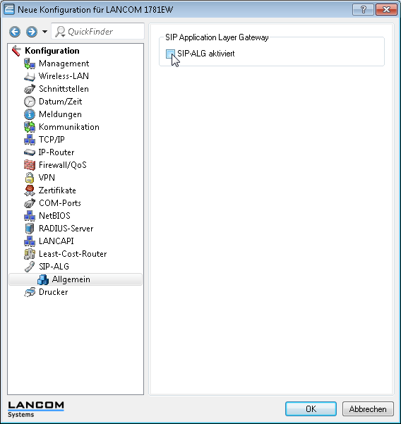 Anmerkung: Das SIP-ALG ist in der Default-Einstellung