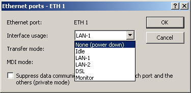 - Monitor: The port is a monitor port, i.e. everything received at the other ports is output via this port. A packet sniffer such as Wireshark / Ethereal can be connected to this port, for example.