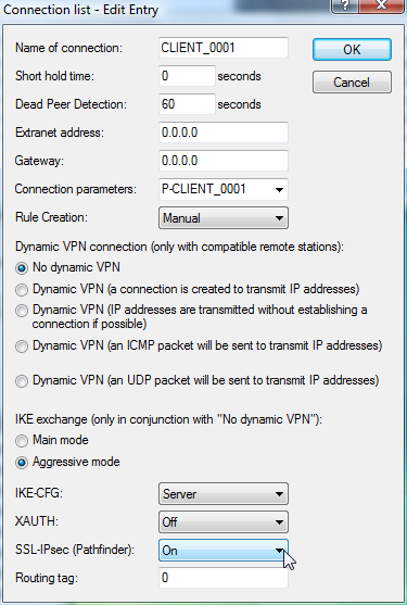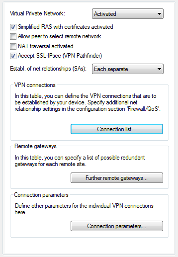 Note: Note that when the VPN Pathfinder option is activated, the VPN connection can only be established when the remote site also supports this technology, and when the remote site is set up to receive passive VPN connections that use VPN Pathfinder.