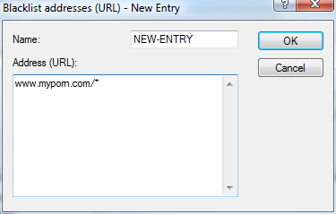 Note: Please enter the URL without the leading http://. Please note that in the case of many URLs a forward slash is automatically added as a suffix to the URL, e.g. www.mycompany.de/ . For this reason it is advisable to enter the URL as: www.mycompany.de* .Individual URLs are separated by a blank. Default:- Blank