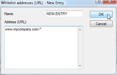 Note: Please enter the URL without the leading http://. Please note that in the case of many URLs a forward slash is automatically added as a suffix to the URL, e.g. www.mycompany.de/ . For this reason it is advisable to enter the URL as: www.mycompany.de* .Individual URLs are separated by a blank. Default:- Blank