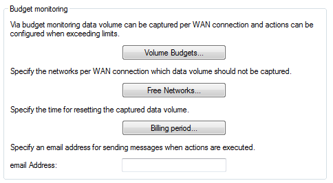 | Volume budget / Data volumes on the WAN interface | |