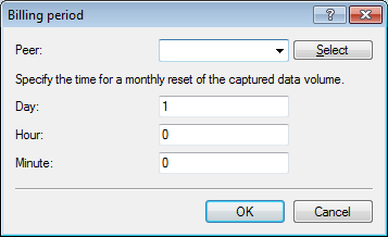 The item Peer lets you select the remote station for which you want to set the time when the period starts. With Select you can choose from the available remote stations or manage new ones.