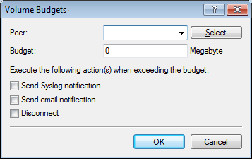 The item Peer lets you select the remote station which requires a volume budget. With Select you can choose from the available remote stations or manage new ones.