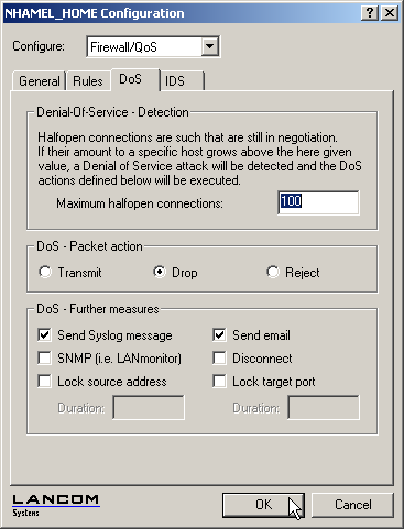 LANconfig: Firewall/QoS / DoS
