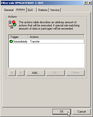 - On the “Actions” tab for these firewall rules, set the “Packet Action” to “Transmit”.