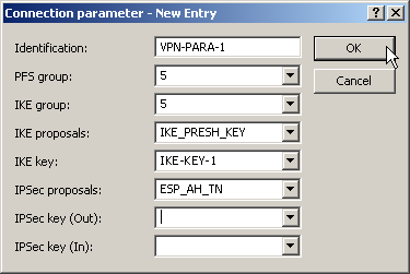 - When configuring VPN, access the “IKE param.” tab and create a new IKE key for the connection: