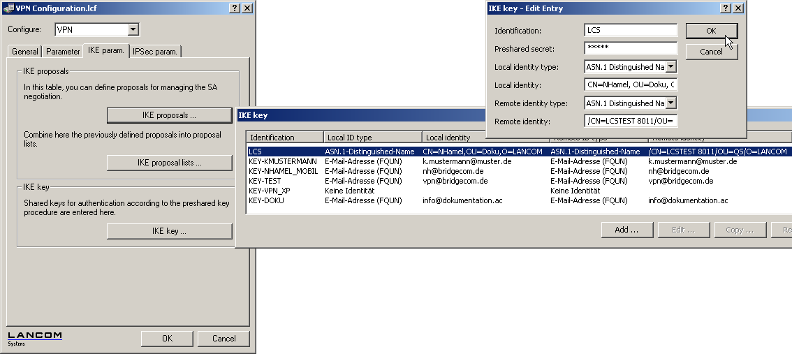 LANconfig: VPN / IKE param. / IKE proposal lists
