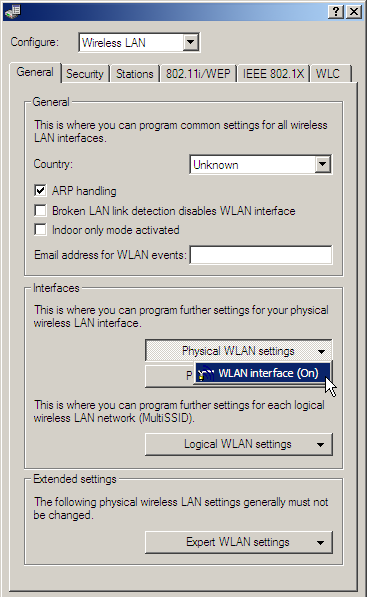 In addition to the general WLAN parameters, a variety of settings apply specifically to each WLAN module in the access point.