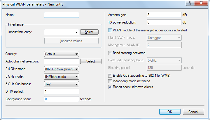 - InheritanceSelection of a physical WLAN parameter set defined earlier and from which the settings are to be inherited.