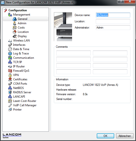 As of version 8.00, the two top layers of the configuration menu in LANconfig are permanently visible in a dedicated area as a "configuration tree". This new structure makes it easier to navigate through the program for quick switching between the main configuration areas.