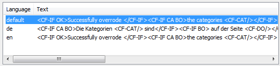 Note: The country code must match the browser language setting exactly, e,g, "de-DE" must be entered for German ("de" on its own is not sufficient). If the country code set in the browser is not found in this table, or if the text stored under that country code is deleted, the predefined default text ("default") will be used. You can modify the default text.Possible values:- 10 alphanumerical characters