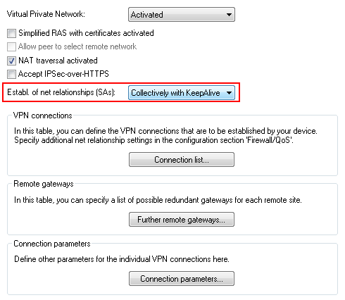 | Short hold time | Specify the short-hold time in seconds for the VPN connection. In this example, the value for the 1781AW is set to 0. This means that this router will not actively establish the VPN connection. The value for the 1781VA-4G is set to 9999. This value means that the router will not actively disconnect and, in case the connection is lost, it reconnects immediately. |