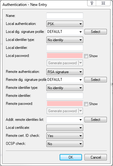 - ASN.1 Distinguished Name: The device expects a distinguished name as a remote ID (e.g. "CN=client01.example.com,O=test,C=DE").