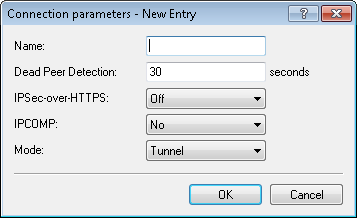 Use this table to specify the parameters of IKEv2 VPN connections that are not included in the SA negotiation. An entry named "DEFAULT" is provided with common settings.
