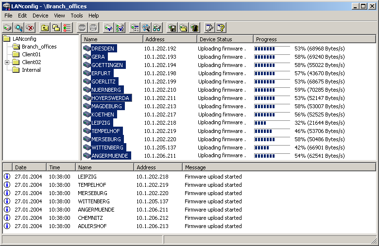 - Firmware upload: Uploads firmware simultaneously to all selected devices