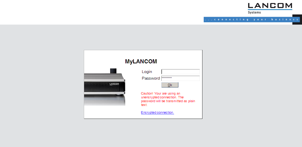Note: As an alternative, the login dialog provides a link for an encrypted connection over