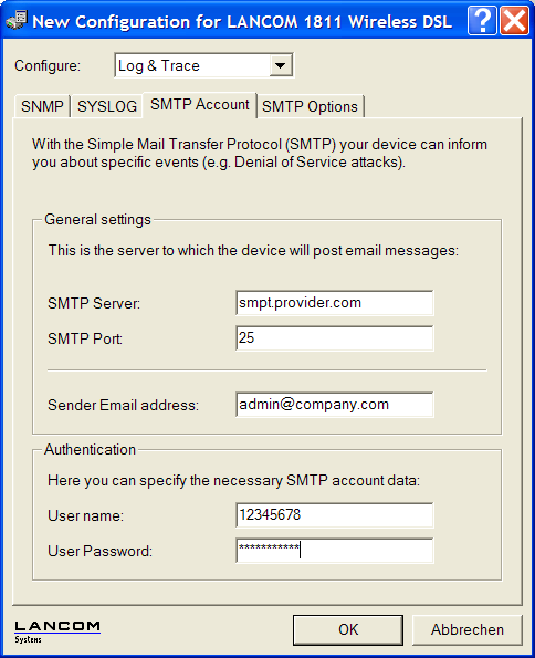 WEBconfig: LCOS menu tree / Setup / SMTP