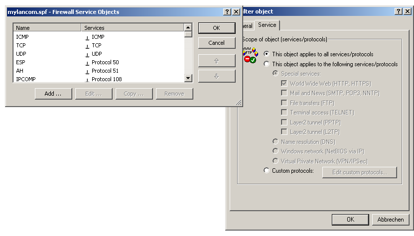 Definition of firewall objects