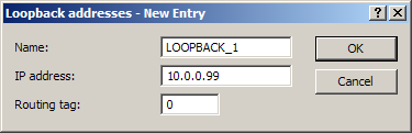 - Routing tag Routing tag of the loopback address. Loopback addresses with the routing tag '0' (untagged) are visible to all networks. Loopback addresses with a different routing tag are only visible to networks with the same routing tag.