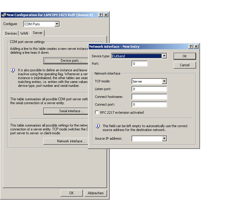 WEBconfig: Setup / COM-Ports / COM-Port-Server / Network settings