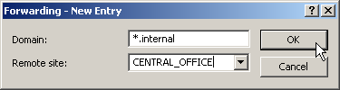 - To resolve entire name areas of another DNS server, add a forwarding entry
