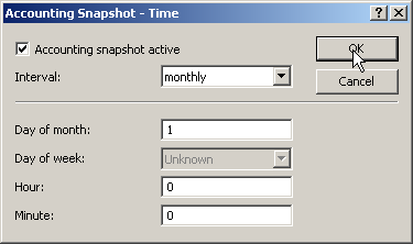 When configuring the snapshot, the interval is set in which the accounting data are temporarily saved into a snapshot: