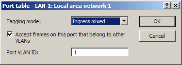 - Allow all VLANs (allows packets from other VLANs to enter this port)This option defines whether tagged data packets with any VLAN ID should be accepted, even if the port is not a "member" of this VLAN.