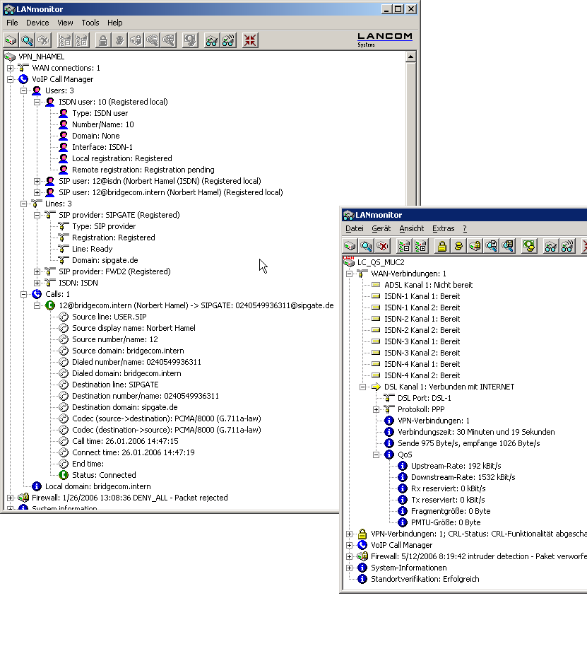 LANmonitor displays a wealth of information about calls switched in the LANCOM: