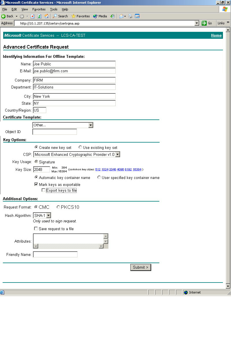 Requesting a certificate with Stand-alone Windows CA