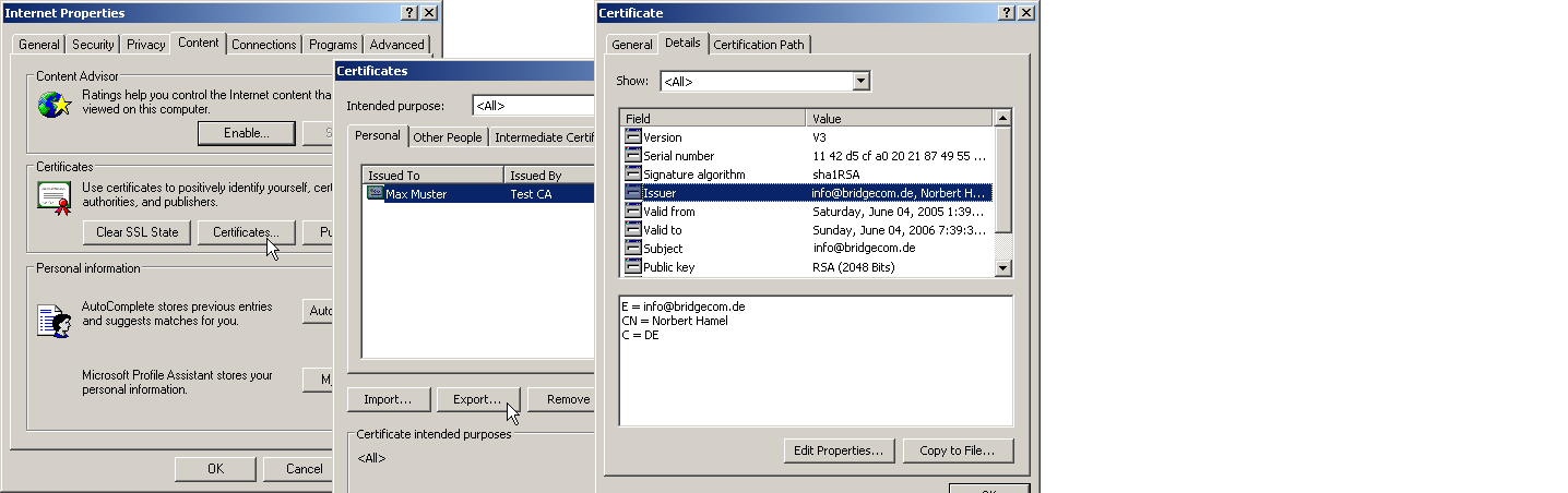 - The identities are entered exactly as they stand in the certificates. The individual values such as 'CN', 'O' or 'OU' can be separated by commas or slashes.