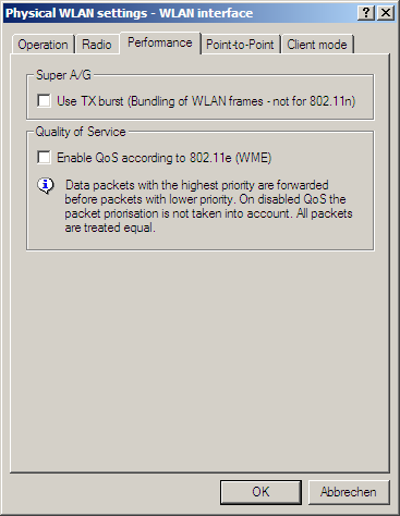 LANconfig: Wireless LAN / General / Physical WLAN settings / Performance