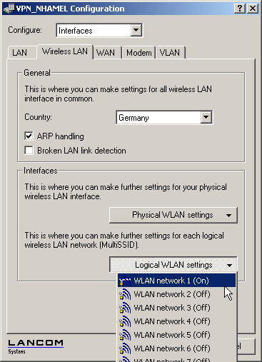 Every physical WLAN interface can support up to eight different logical wireless networks (Multi-SSID). Parameters can be defined specifically for each of these networks, without the need of additional access points.