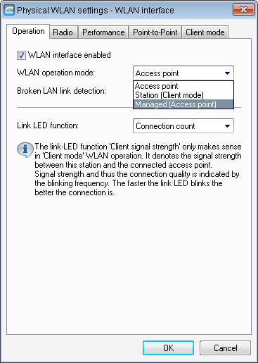 - Ex-factory, the WLAN modules in wireless routers are set to the 'access point' operating mode. In this mode, wireless routers function as standalone APs with a configuration that is stored locally in the device. For integration into a WLAN infrastructure that is centrally managed by WLCs, the operating mode of the WLAN modules in wireless routers has to be switched into the 'managed' mode.