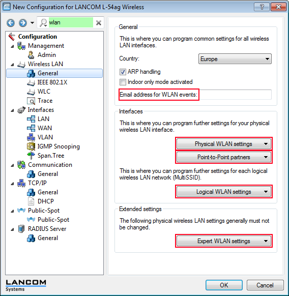 - Start LANconfig.