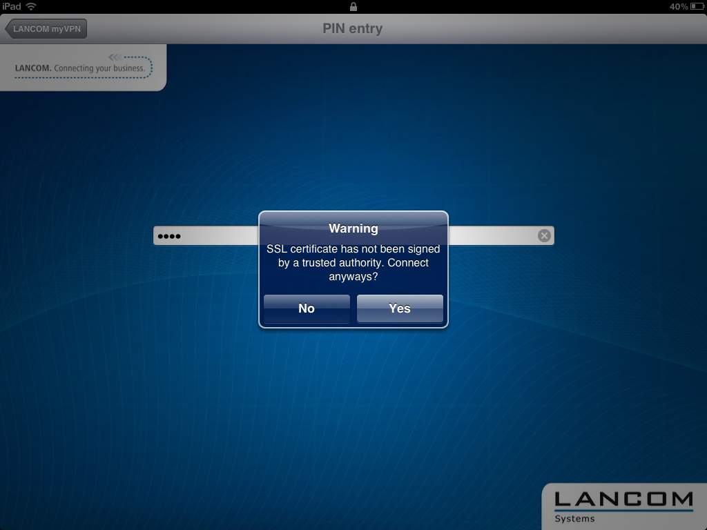 Note: If you enter your PIN incorrectly 5 times, the myVPN module on the LANCOM VPN device