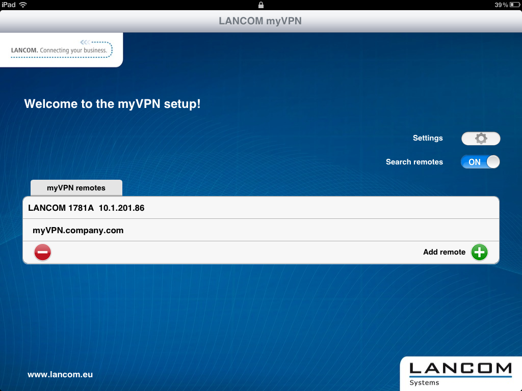 Note: The purpose of the LANCOM myVPN app is to set up the VPN client on iOS devices with the