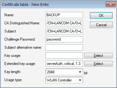 is entered, e.g. /CN=LANCOM CA/O=LANCOM SYSTEMS/C=DE