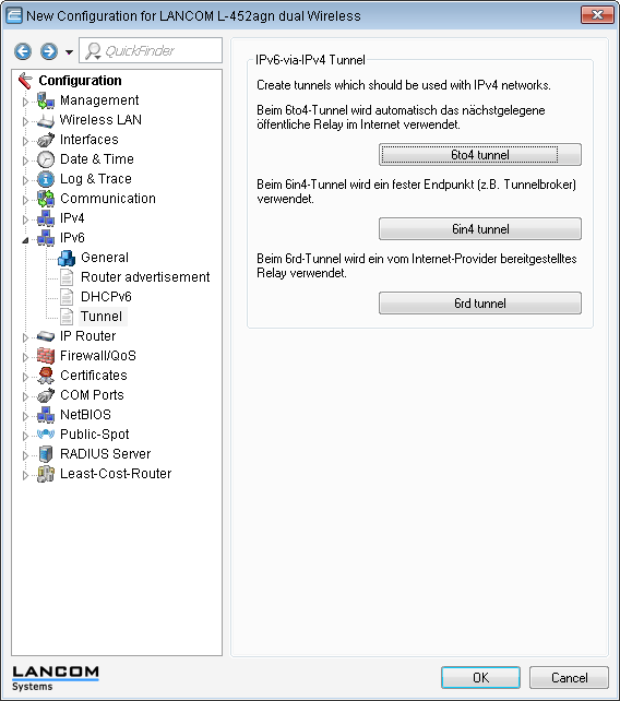 To set up a 6to4 tunnel with LANconfig, proceed as follows: