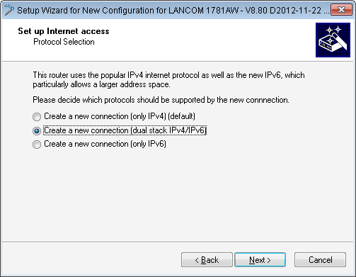 In the following we take you through the setup of a dual-stack connection. Activate the appropriate selection.