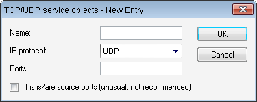 Using the TCP/UDP service objects button, you define TCP/UDP services that the IPv6 firewall can use in filter rules.