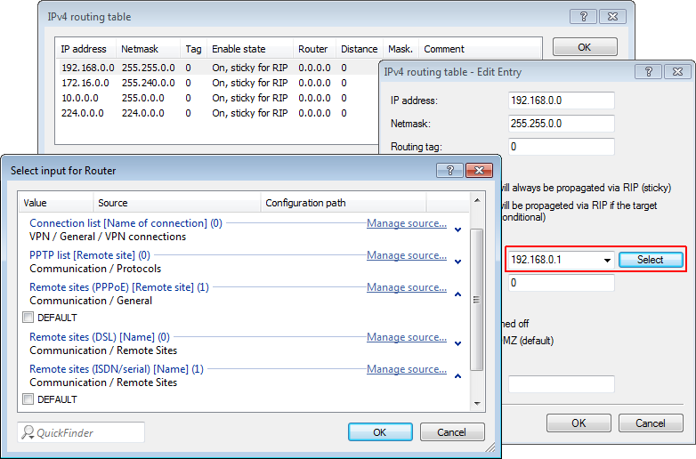 To clarify the structure of the configuration, LANconfig shows the configuration path apart along with the individual sources. If the configuration parameters can be chosen from multiple source tables, LANconfig groups the entries accordingly. For each group, LANconfig additionally specifies the number of entries contained.