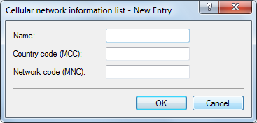 In order to edit the entries in the table Cellular network information list, click on the button Add.... The entries in the edit window have the following meaning: