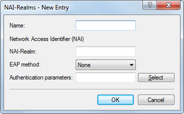 In order to edit the entries in the table NAI realms, click on the button Add.... The entries in the edit window have the following meaning: